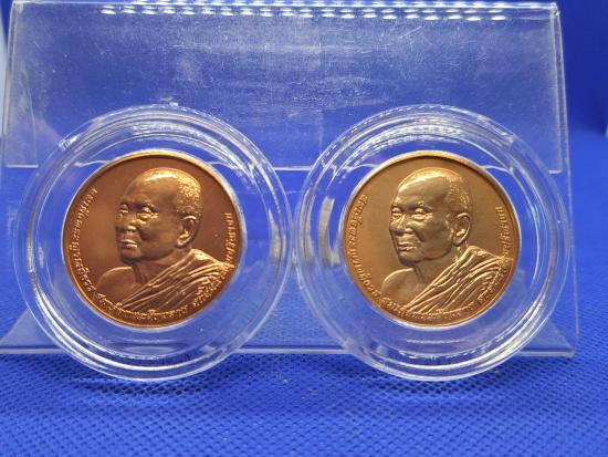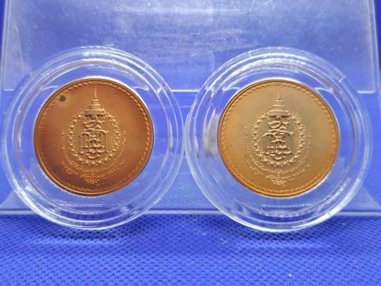 เหรียญที่ระลึกการพระราชพิธีพระราชทานเพลิงพระศพสมเด็จพระญาณสังวร สมเด็จพระสังฆราช สกลมหาสังฆปริณายก ปี 58 เนื้อทองแดง กรมธนารักษ์จัดสร้าง 2เหรียญ เคาะเดียว