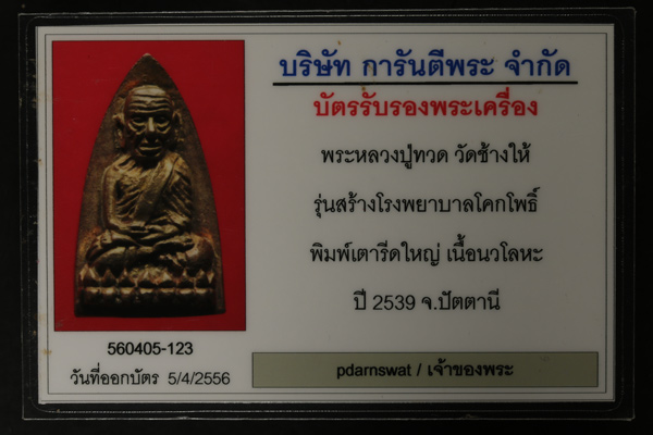 พระหลวงปู่ทวด วัดช้างให้ รุ่นสร้างโรงพยาบาลโคกโพธิ์ พิมพ์เตารีดใหญ่ เนื้อนวโลหะ ปี 2539 จ.ปัตตานี