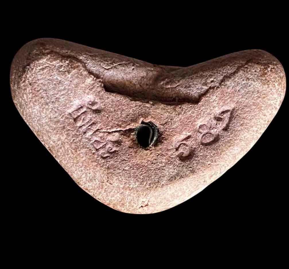 พระปิดตาเนื้อผง หลังยันต์ ใต้ฐานฝังตะกรุด ตอกหมายเลขครับ