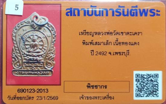 เหรียญเสมาเล็ก ลพ.วัดเขาตะเครา เนื้อทองแดง ปี2492 จ.เพชรบุรี พร้อมบัตรรับรอง