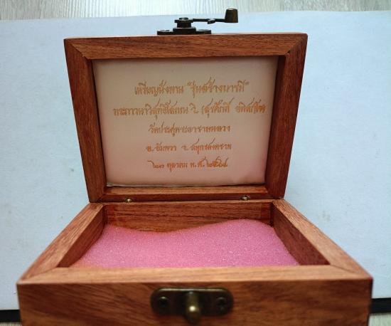 วัดใจเคาะเดียวแดงจ้า กล่องไม้ใส่เหรียญนั่งพานสร้างบารมี หลวงพ่อมหาสุรศักดิ์ สวยหรู เคาะเดียวแดงจ้า