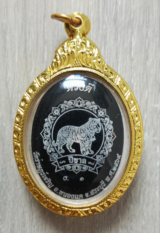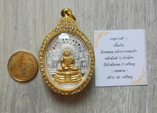 วัดใจเคาะเดียวแดงจ้า เหรียญดวงดี หลวงพ่อสำเร็จศักดิ์สิทธิ์ เนื้อเงินฝังพลอย หน้ากากทองคำ หลังนักกษัตรปีขาล หมายเลข1 ตลับอิตาลีฝังเพชร เคาะเดียวแดงจ้า