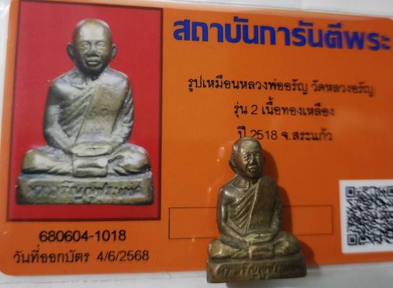 รูปหล่อ หลวงพ่ออรัญ วัดหลวงอรัญ เนื้อทองเหลือง ปี 2518 จ.สระแก้ว พร้อมบัตรรับรอง