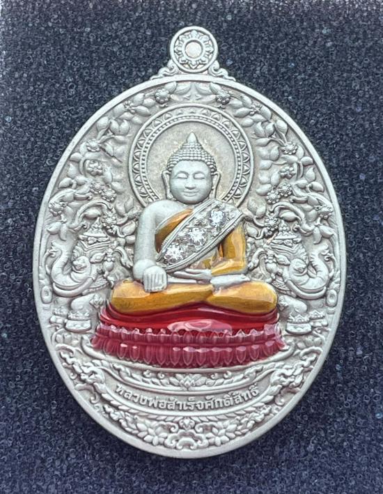 เหรียญหลวงพ่อสำเร็จศักดิ์สิทธิ์ วัดราษฎร์เจริญ จ.สระบุรี เนื้ออัลปาก้าซาติน ฝังพลอย สวยๆ