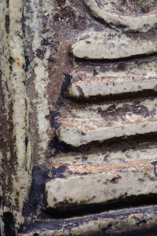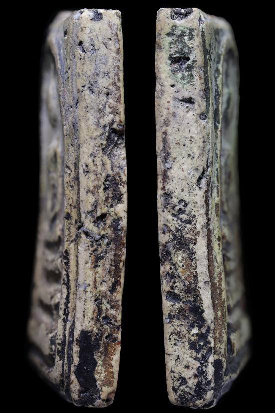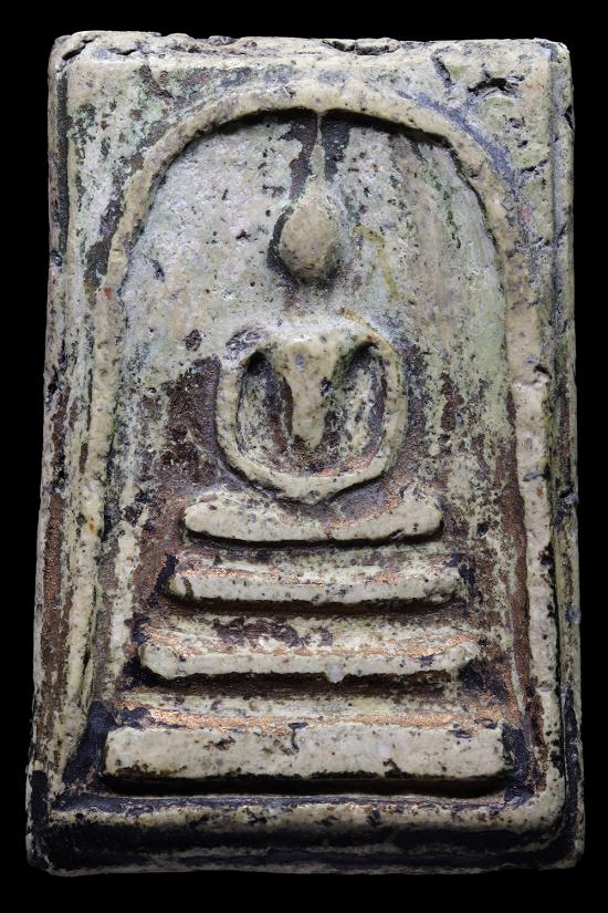 พระสมเด็จเนื้อผงเก่า มีคราบลงรักประปรายไม่ทราบที่
