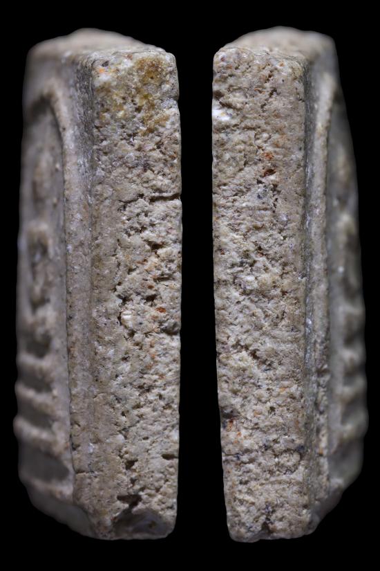 พระสมเด็จคะแนนเนื้อผงเก่า มีจุดบางๆรอบเกศคล้ายปรกโพธิ์ไม่ทราบที่