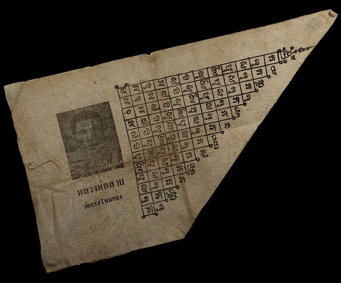 100 / ผ้ายันต์ชายธง หลวงพ่อสายวัดกระโจมทองสมุทรสาคร สวยเดิมๆตามรูปครับ