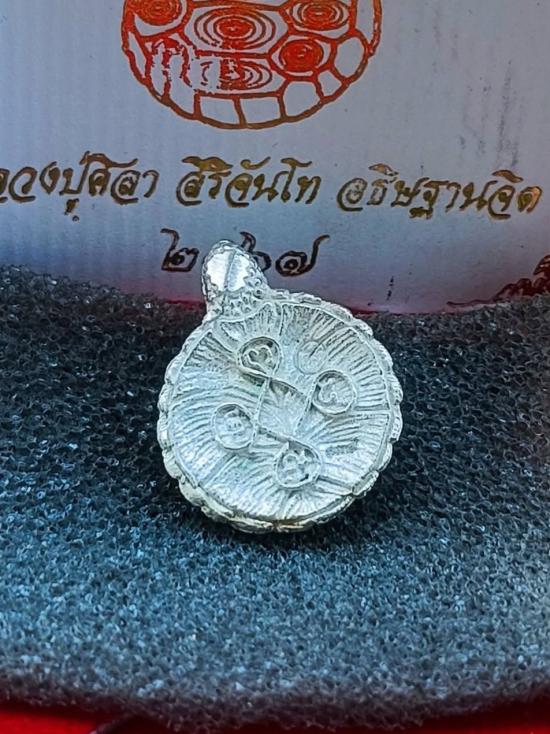 ชื่อพระเครื่อง พญาเต่าเรือนมหาลาภ หลวงปู่ศิลา หลวงปู่มหาศิลา สิริจันโท วัดพระธาตุหมื่นหิน จ.กาฬสินธุ์ (ปลุกเสกพิธีเดียวกับเหนือดวง 2) เนื้อเงิน เลข ๑๓๔ มีกล่องเดิม