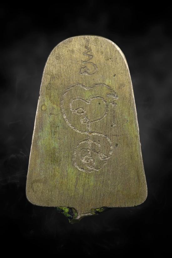 สุดยอดโลหะแร่กายสิทธิ์ พระหล่อเนื้อเมฆสิทธิ์ หลังจารเต็มสูตร ก้นจารเลขโค็ต หักช่อ ตะใบตกแตงชัดเจน เขียวปีกแมลงทับ