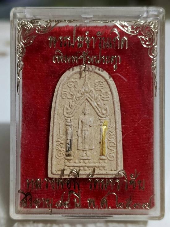พระผงประจำวันเกิด พิมพ์ซุ้มประตู ตะกรุดทองคำ เงิน หลวงพ่อมี วัดมารวิชัย จ.อยุธยา ปี 2537 สวยพร้อมกล่องเดิมๆจากวัด
