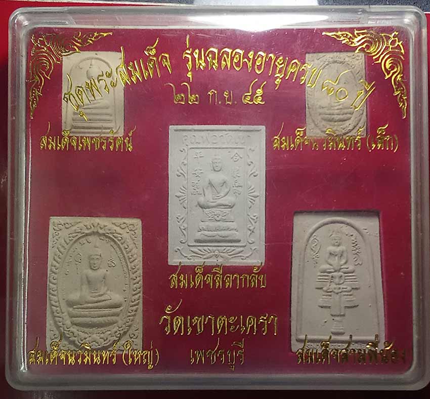 ***เคาะเดียว*** (5 องค์) ชุด พระสมเด็จลีลากลับ + สมเด็จเพชรรัตน์ + สมเด็จนวมินทร์ (เล็ก) + สมเด็จนวมินทร์ (ใหญ่) + สมเด็จสามพี่น้อง + (รุ่น ฉลองอายุครบ 80 ปี) พระครูวชิรกิจโสภณ เจ้าอาวาส วัดเขาตะเครา จ.เพชรบุรี ปี45 (มวลสารเก่าศักดิ์สิทธิ์) + (พิธีใหญ่) ศักดิ์สิทธิ์มากๆครับ เด่นด้านเมตตา มหาเสน่ห์ โชคลาภ ค้าขายเป็นเลิศ!!! แก้ดวงตก กลับร้ายกลายเป็นดี แคล้วคลาดมหาอุตม์ครับ รับประกันแท้ สภาพสวยสมบูรณ์ครับ (หายากแล้วครับ)
