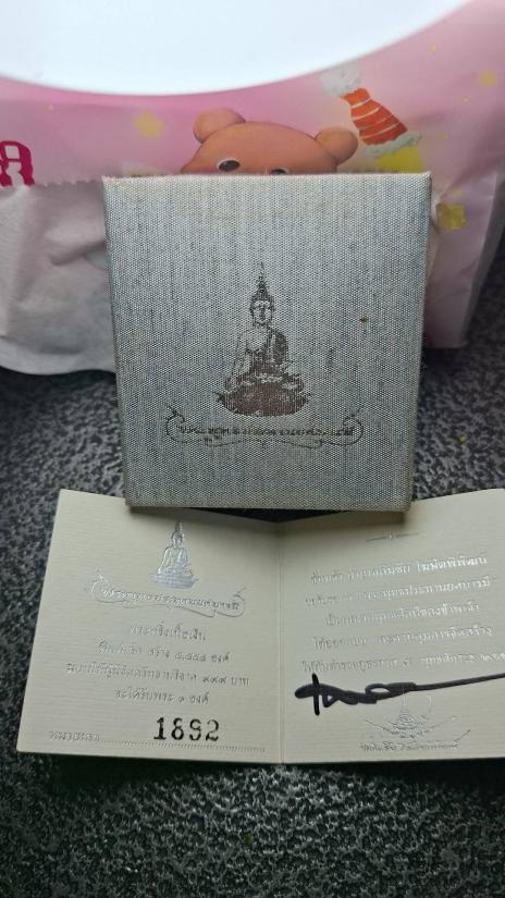 กล่องพระพุทธประทานยศกริ่งเงินเล็กขาสปริ้งหักพร้อมใบเซอร์
