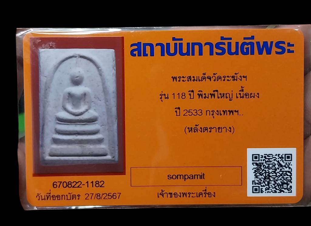 วัดใจ100เคาะเดียวแดงทุกรายการ สมเด็จวัดระฆัง118ปีพิมพ์ใหญ่หลังตรายาง มีใบรับประกันพระแท้