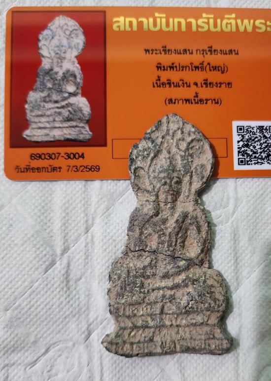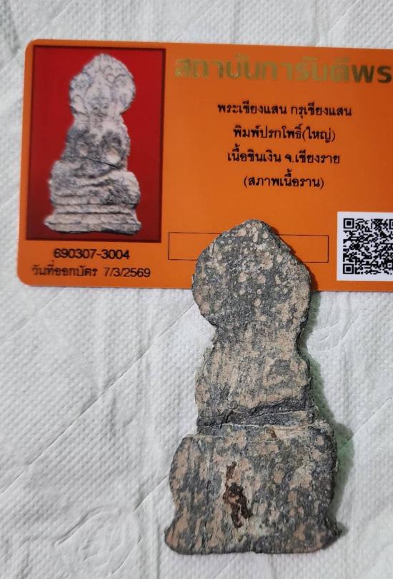 พระเชียงแสน กรุเชียงแสน พิมพ์ปรกโพธิ์(ใหญ่) เนื้อชินเงิน จ.เชียงราย พร้อมบัตรรับรองสภาพตามบัตรพระแท้