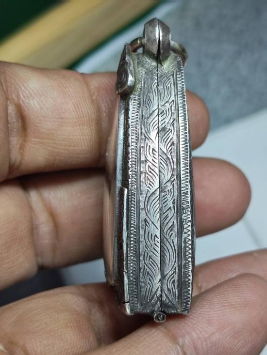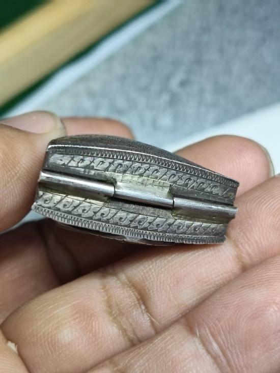 ชื่อพระเครื่อง ตลับเงินงานเก่า แกะมือ หนัก 17.6 กรัม จอในกว้าง 2 ซม. สูง 3 ซม. สวยๆ ครับ