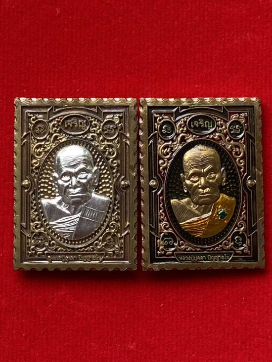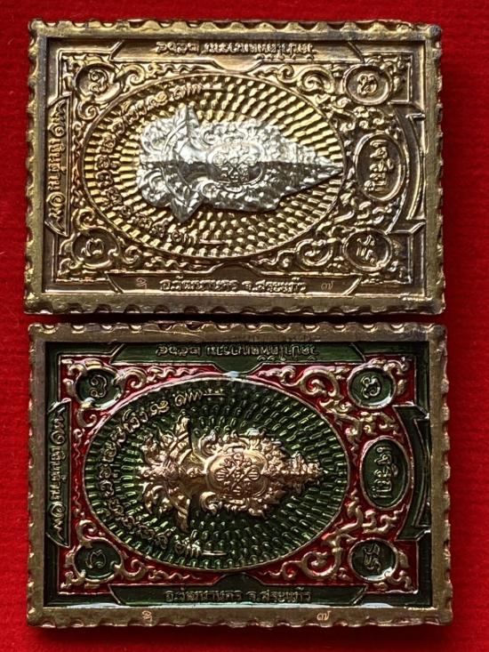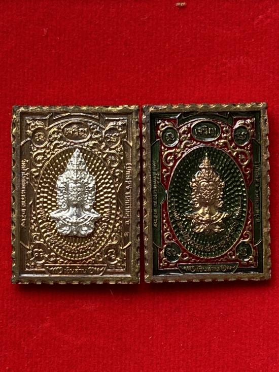 เคาะเดียวแดง หลวงปู่บุดดา รุ่น แสตมป์เงินล้าน รายการที่3 ชุดรองประทาน เนื้อ นวะหน้ากากเงินหน้าหลัง นวะลงยาฝังพลอยเขียว (ไม่มีเนื้อเงิน)