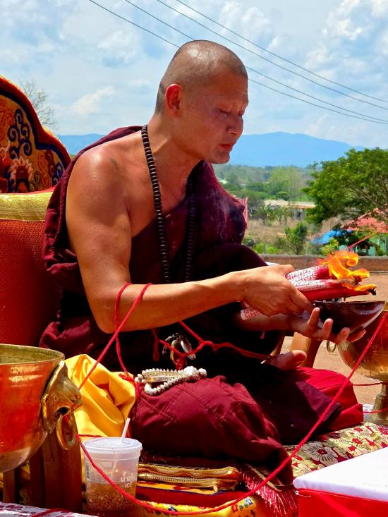 ผงดวง ครูบาศักดิ์ จ.ลำปาง เนื้อขาว ผสมด้ายแดงมงคล ตะกรุดทองแดง จารมือ