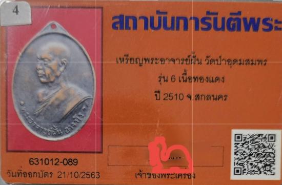 เหรียญพระอาจารย์ฝั้น รุ่น6 วัดป่าอุดมสมพร เนื้อทองแดง ปี พ.ศ.2510 สกลนคร