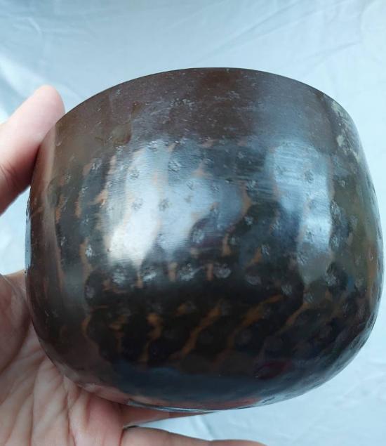 ขันทำจากโลหะทองบรอนซ์หนัก ทาด้วยแลคเกอร์ญี่ปุ่นสีดำเงา (Urushi)
