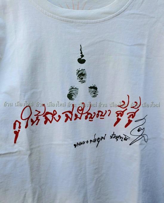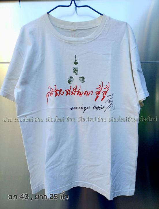 เสื้อยืดแรงเยอร์ ( แบบสกรีนลายเจิมนิ้วมือ กูให้มีปัญญาสู้สู้ ) ปลุกเสกโดย หลวงพ่อคูณ พ.ศ.2548 ( อก 43 นิ้ว , ยาว 25 นิ้ว , มือสอง , มีตำหนิข่วนตามด )