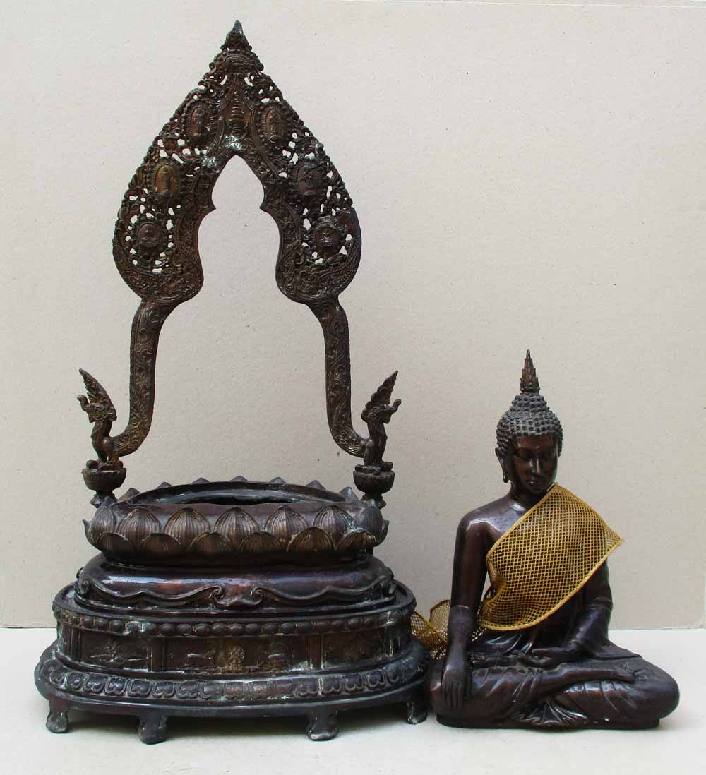 เนื้อโลหะรมมันปู ผิวแห้งหิ้ง องค์พระกับฐานถอดออกได้ 2 ชิ้น สภาพพุทธศิลป์สวยสมบูรณ์ งดงาม !!