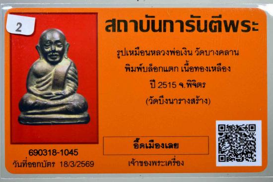 รูปเหมือนหลวงพ่อเงิน วัดบางคลาน พิมพ์บล็อกแตก เนื้อทองเหลือง ปี2515 จ.พิจิตร(วัดบึงนารางสร้าง)พร้อมบัตรรับรอง