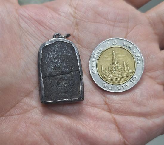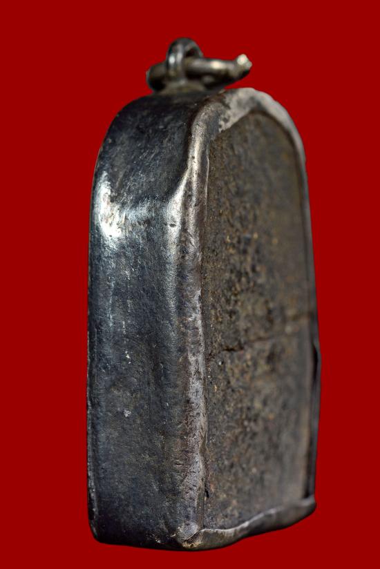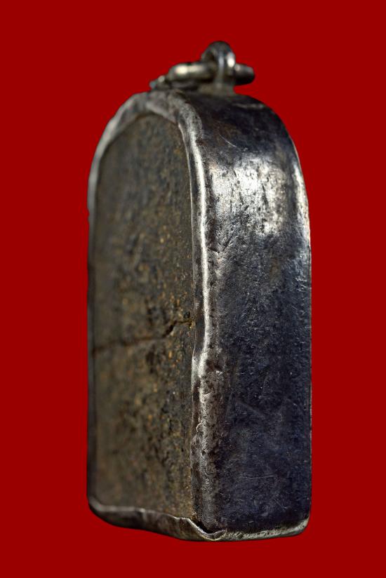 พระผงคลุกรัก สภาพใช้สึกชำรุด เลี่ยมกรอบเงินโบราณ