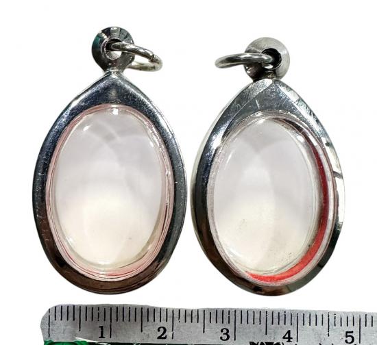 ตลับมือสองสแตนเลสรูปไข่ใส่เหรียญทั่วไป 2 ใบแบบเปิดหน้า-หลังขนาด 2.5 x 2 ซม.