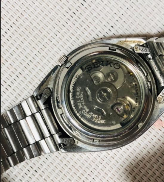 ???...Seiko 5 Automatic หน้าขาว ลายผ้า Day/Date หลังใส ...???