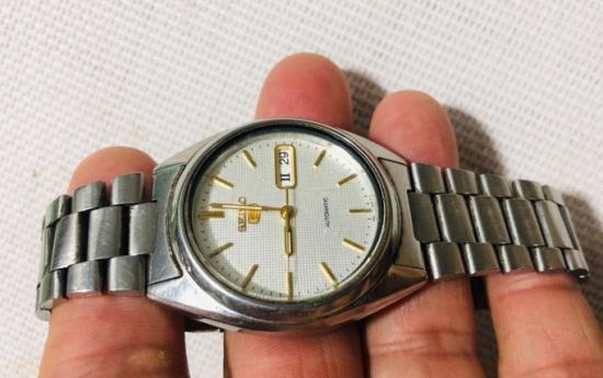 ???...Seiko 5 Automatic หน้าขาว ลายผ้า Day/Date ...???