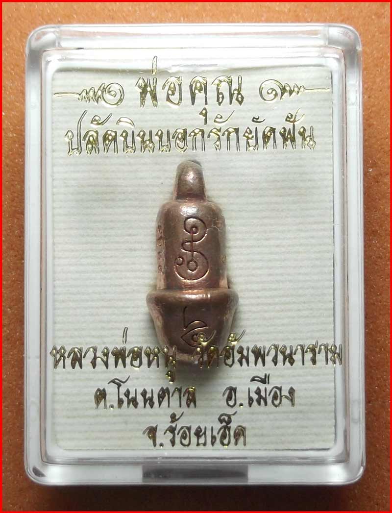 พ่อคุณปลัดบินบอกรักยัดฟัน หลวงพ่อหนู วัดอัมพวนาราม จ.ร้อยเอ็ด เนื้อทองสายไฟล่อ หมายเลข 1244 เสน่ห์ เมตตา ค้าขายดี