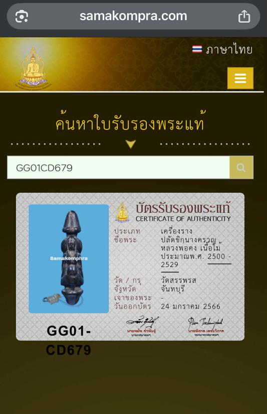 ปลัดขิกนางครวญ หลวงพ่อคง เนื้อไม้ วัดสรรพรส จ.จันทบุรี ปี2500-2529 พร้อมบัตรรับรองสมาคมฯ