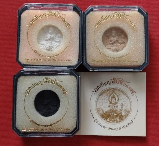 กราบขออนุญาติท่านอาจารย์เฉลิมชัยโฆษิตพิพัฒน์ขอแบ่งปันอภิปัญญาพิมพ์เล็กเนื้อผงพุทธคุณครบ3สีมีขาวดำและสีน้ำตาลสภาพสวยพร้อมกล่องเดิมครบชุดขนาด3.5เซนพุทธศิลป์สวยงามราคาเบาน่าสะสมครับ