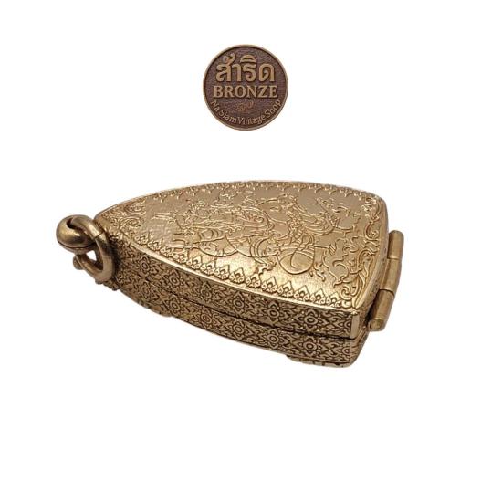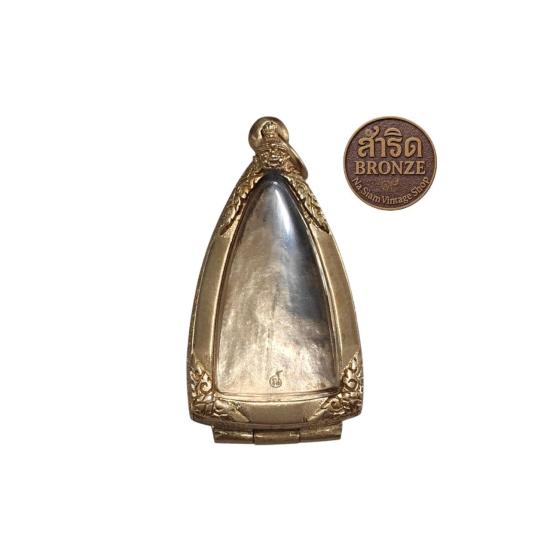 ตลับพระ กรอบพระ เนื้อสำริด หรือ บรอนซ์ (Bronze) งานดิบ ไม่ชุบ ปิดหลังลายพระพิฆเนศสำหรับพระหลวงปู่ทวด หรือ รูปหล่อลอยองค์