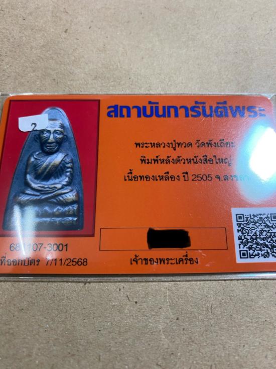 หลวงปู่ทวด หลังหนังสือ พิมพ์ใหญ่ วัดพังเถียะ ปี 2505
