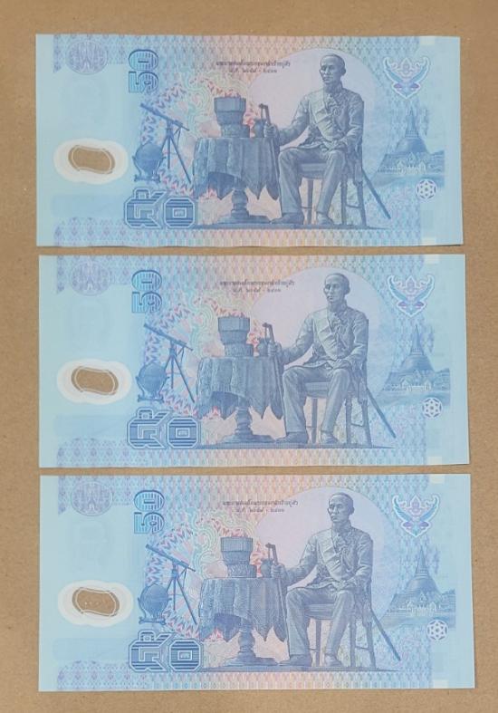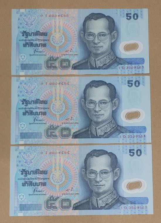 ธนบัตร 50 บาท พอลิเมอร์ 3 ฉบับ เลขเรียง