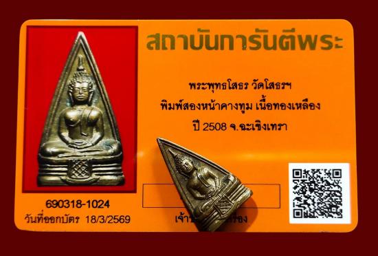 ...พระพุทธโสธร วัดโสธรๆ พิมพ์สองหน้าคางทูม (นิยม) เนื้อทองเหลือง ปี2508 จ.ฉะเชิงเทรา พร้อมบัตร