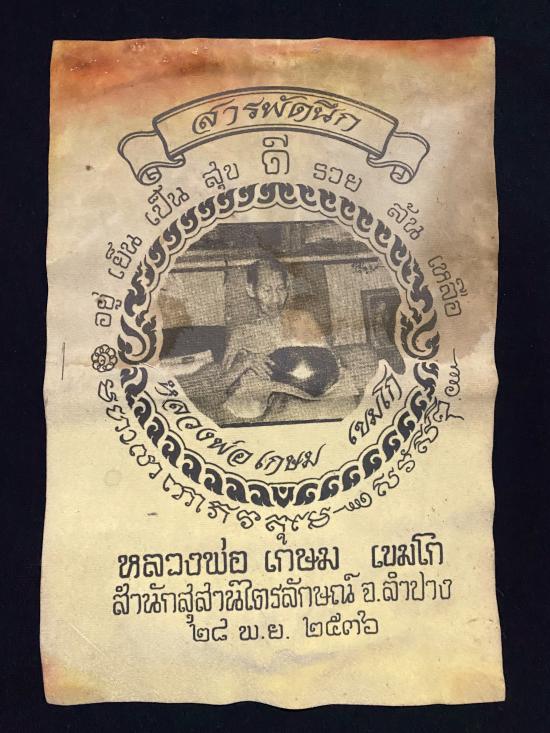 ผ้ายันต์สารพัดนึก หลวงพ่อเกษม ปี 2536 อยู่ เย็น เป็น สุข ดี รวย ล้น เหลือ ปั๊มม์ตรายาง