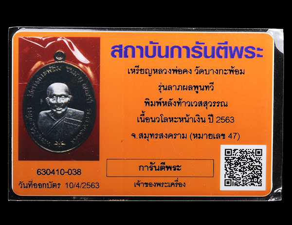 (รุ่น.ลาภผลพูนทวี มีทรัพย์เพิ่ม) หลวงพ่ออิฏฐ์ ภทฺทฐาโร ประธานจัดสร้าง เนื้อนะวะหน้าเงิน(หมายเลข 47)