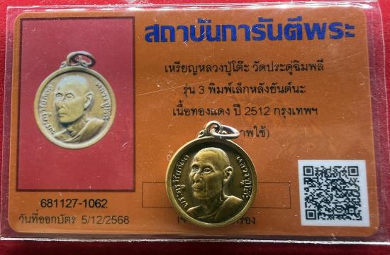 เนื้อทองแดง ปี 2512 พร้อมบัตรรับรอง จากสถาบันการันตีพระ