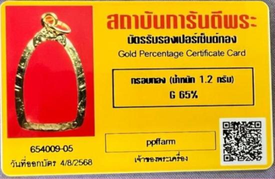 กรอบทอง น้ำหนัก 1.2 กรัม ทอง 65% ขนาดหน้าจอ 1.2 x 2.0 ซม พร้อมบัตร