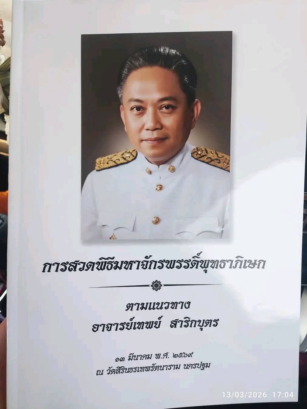 #ส่วนในช่วงเช้า กระผม/อาตมภาพเจริญพระกรรมฐานและทำวัตรเช้าแล้ว ก็ได้เดินทางไปงานที่รับไว้ในวันนี้ ก็คือร่วมอธิษฐานจิตในพิธีมหาจักรพรรดิ เพื่อสถาปนาพระพิชัยสงครามและตะกรุดมหาจักรพรรดิตราธิราช ที่วัดสิรินธรเทพรัตนาราม ตำบลอ้อมใหญ่ อำเภอสามพราน จังหวัดนครปฐม ตามแนวทางของท่านอาจารย์เทพย์ สาริกบุตรปรมาจารย์เลขยันต์ที่มีชื่อเสียงมากของเมืองไทย