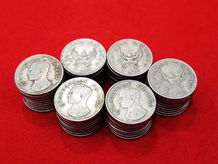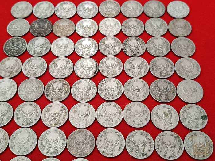 วัดใจ 100 เดียวแดง ++ เหรียญ 1 บาทหลังครุฑ ปี2517 สภาพผ่านใช้ รวม 60 เหรียญ