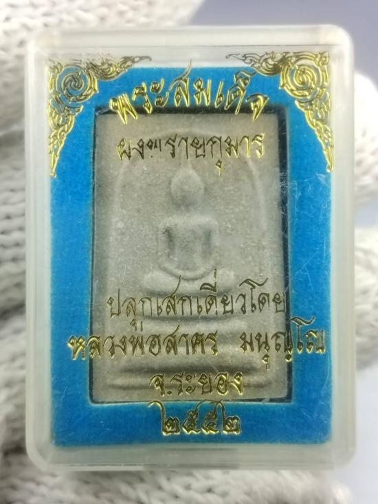 พระสมเด็จผงพรายกุมาร หลวงพ่อสาคร ปี 52หลังยันต์ห้า ฝังพลอยเสก โค้ทนะแดงข้างองค์พระ พร้อมกล่องเดิม