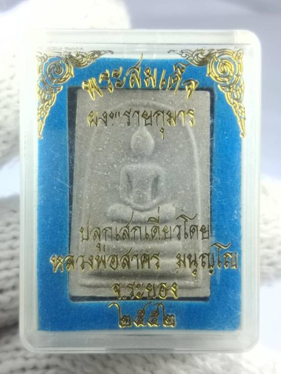 พระสมเด็จผงพรายกุมาร หลวงพ่อสาคร ปี 52หลังยันต์ห้า ฝังพลอยเสก โค้ทนะแดงข้างองค์พระ พร้อมกล่องเดิม