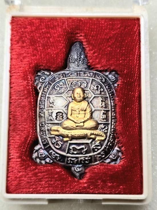 เคาะเดียวแดง เหรียญพญาเต่าเรือนหลวงพ่อสนิท ปี 2541 กะไหล่เงินหน้าทอง วัดลำบัวลอย จ.นครนายก |