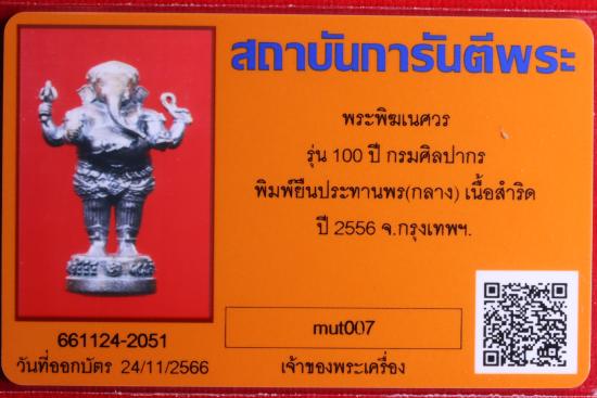 พระพิฆเนศวร รุ่น 100 ปี กรมศิลปากร พิมพ์ยืนประทานพร(กลาง) เนื้อสำริด ปี 2556 กรุงเทพฯ (พร้อมบัตรรับรองฯ)