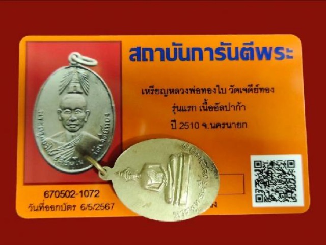 เหรียญหลวงพ่อทองใบ วัดเจดีย์ทอง รุ่นแรก เนื้ออัลปาก้า ปี 2510 จ.นครนายก หาอยาก พร้อมบัตรG-PRA