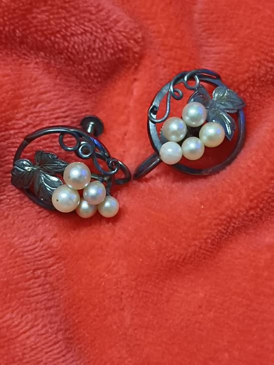 ต่างหูเงินงานเก่าลายถาวองุ่นสวยๆ