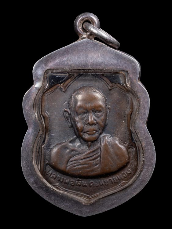 เหรียญอาร์มหลังลายเซ็น หลวงพ่อเงิน วัดดอนยายหอม จ.นครปฐม พ.ศ.2509 เลี่ยมกรอบเงินเก่า !!